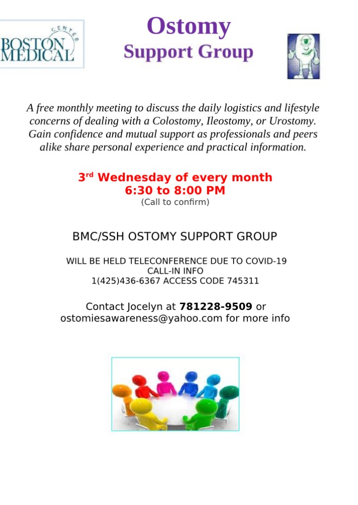 Due to covid-19 THE SSH/BMC OSTOMY GROUP transitioned to a tele-conference Group on every 3rd Wednesday of each month.